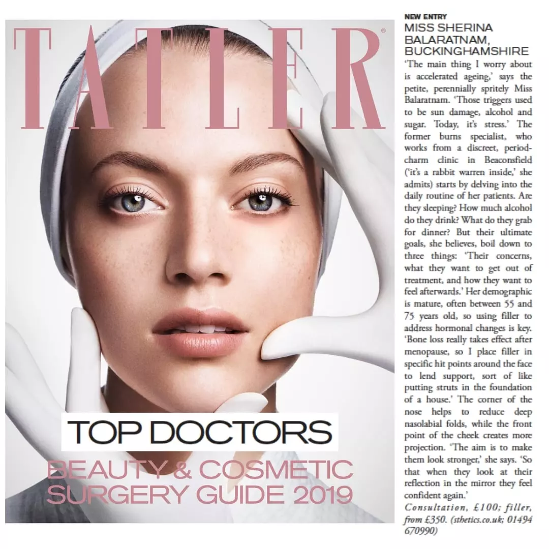 For the first time, our medical director Miss Sherina Balaratnam, is featured as one of the UK’s “Top 5 Doctors” for dermal filler treatment.