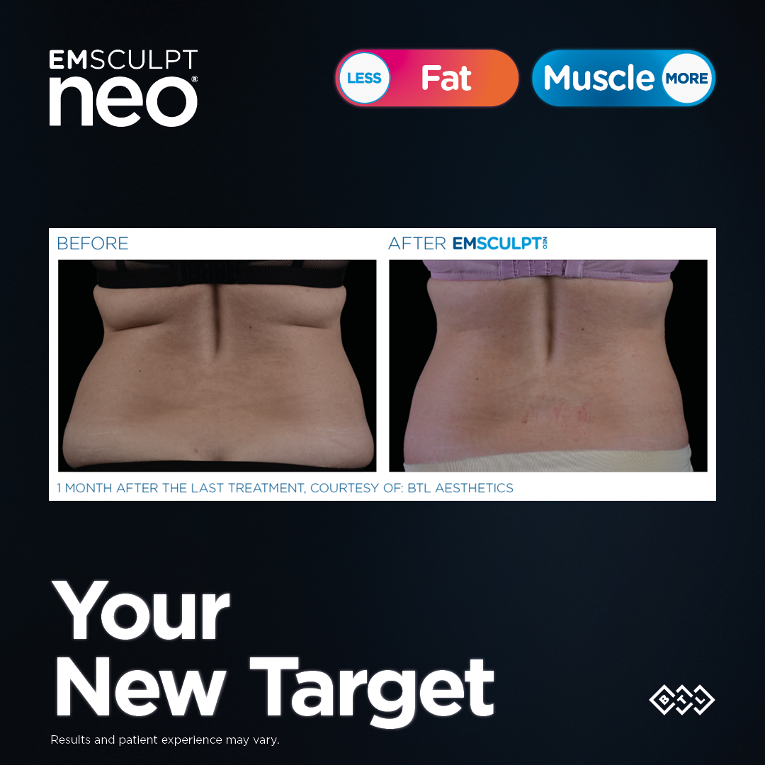 EMSCULPT NEO is now FDA-cleared to treat the Abdomen, Buttocks, Triceps, Biceps, Calves & Flanks.
