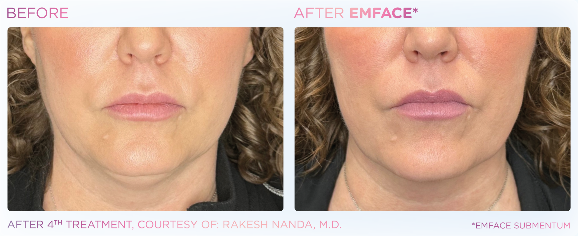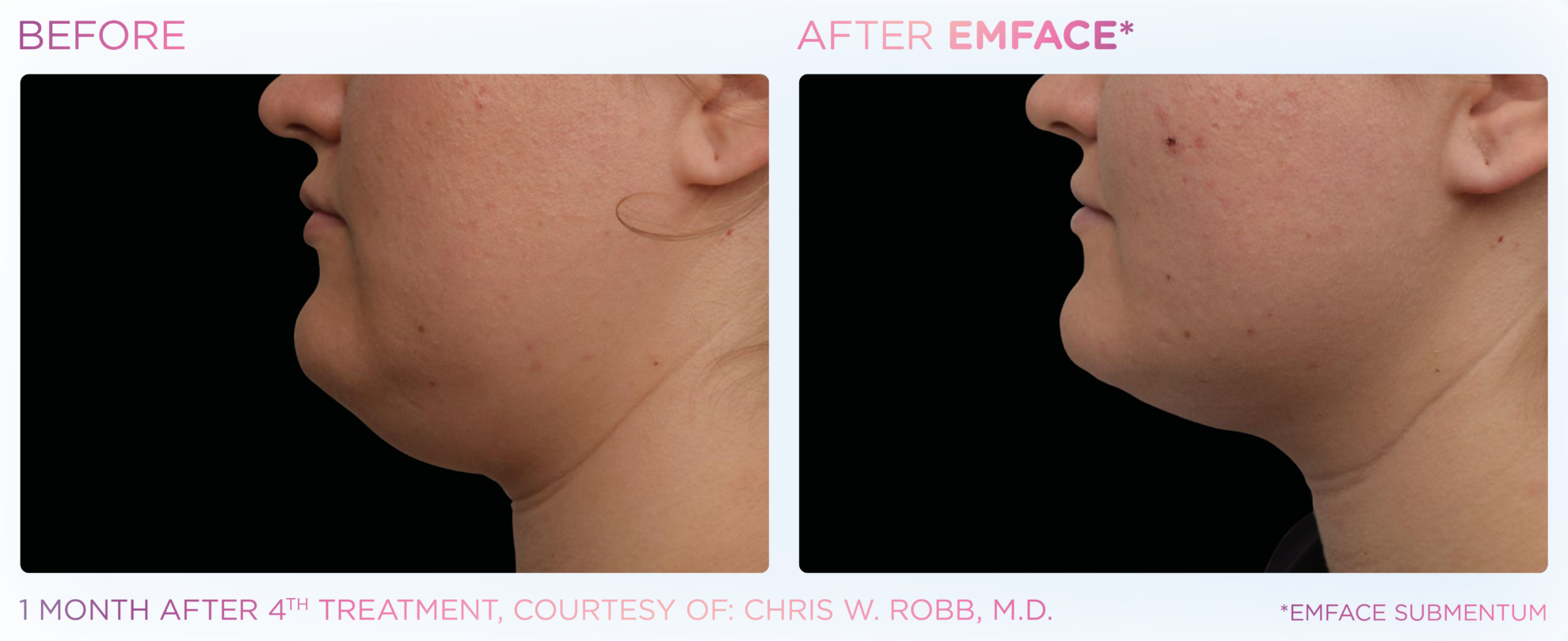 Needle free, knife free, pain free and recovery time free, EMFACE Submentum is designed to specifically target the submental (‘double chin’) area, offering a non-invasive approach to redefine your facial contours.