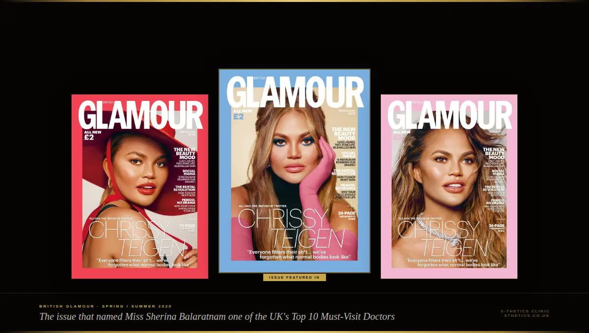 When British Glamour compiled their Spring/Summer edition, they dedicated a full 24-page guide to tweakments, naming ten doctors across the UK whose work they considered essential reading. Miss Sherina Balaratnam, founder and Medical Director of S-Thetics Clinic in Beaconsfield, was among them.